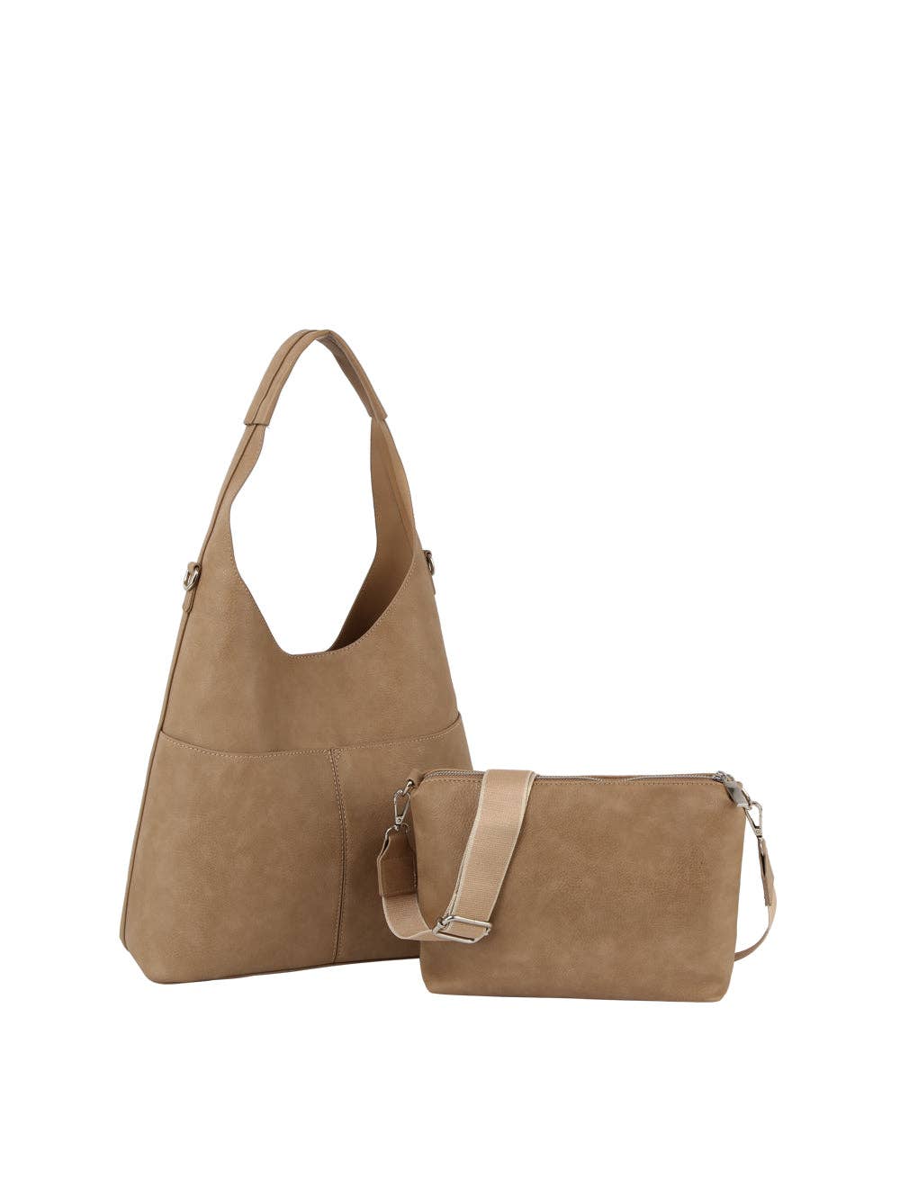 spacious hobo, crossbody, and wristlet for versatile use (all sold separately) Smooth faux leather with a soft slouchy silhouette * Chic zipper details with tassel pulls for added style * Perfect for day-to-night transitions with multiple carrying options Approximate size: 14 x 3.5 x 16